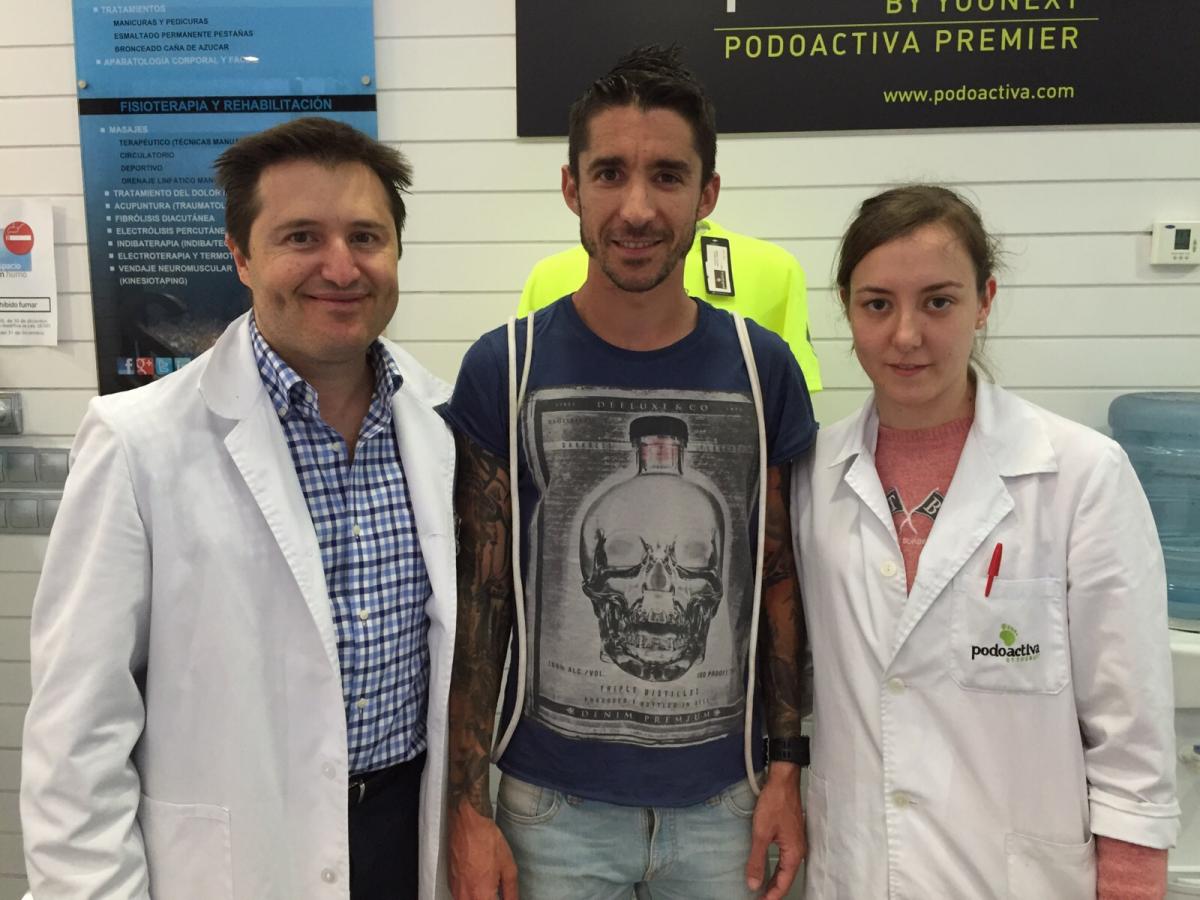 Gustavo Nieves con Víctor Alfaro, CEO de Podoactiva y Esther González podóloga especialista de Podoactiva Premier Madrid.