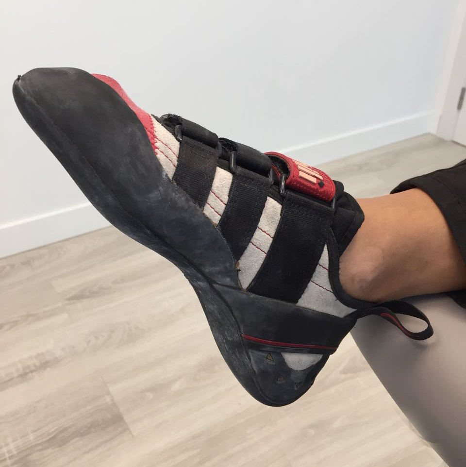 Una de nuestras últimas pacientes escaladoras acudió a Clínica Podoactiva Andorra con un dolor muy agudo a nivel de las falanges media y distal del segundo dedo por el uso de pies de gato, que le provocaba inflamación de las partes blandas y la aparición de un heloma (callo) muy doloroso en el primer espacio interdigital.
