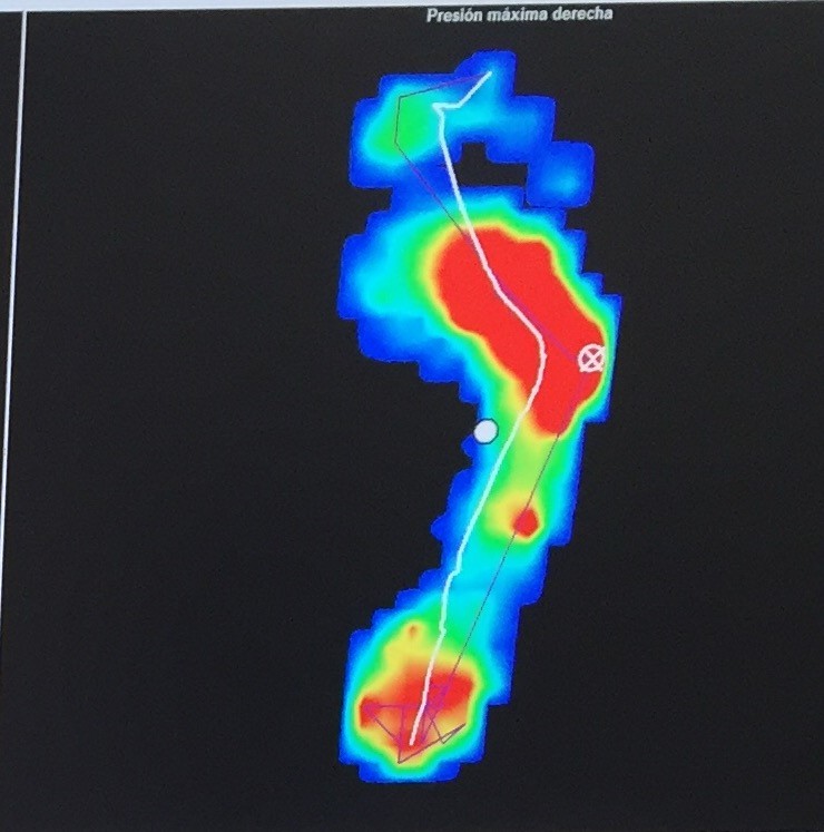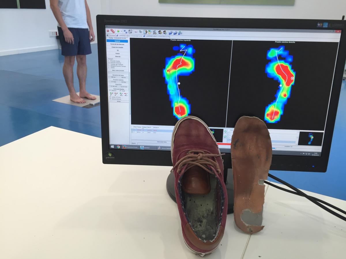 Al realizar el estudio biomecánico observamos un pie con mucho movimiento de supinación, es decir con mucho apoyo en la parte externa del pie. Este tipo de pie se caracteriza por tener una bóveda plantar aumentada. Además, también se detecta un aumento de presión en la apófisis estiloides, el punto más prominente del pie en la parte externa. La presión en la zona está tan aumentada que incluso las palmillas del zapato se rompen.