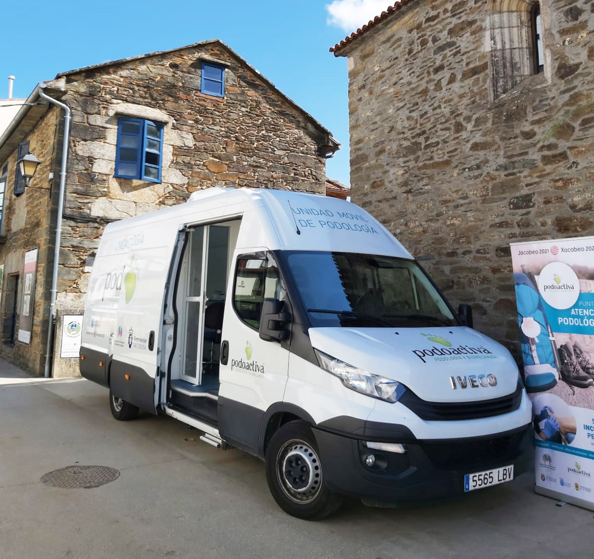 A través de esta iniciativa, con el apoyo de la Diputación de A Coruña y la AMCS, ponemos nuestra Unidad Móvil completamente equipada y el conocimiento de nuestros profesionales a disposición de los peregrinos del Camino de Santiago Francés, dándoles consejos prácticos para cuidar sus pies en su recorrido y tratando de aliviar las dolencias surgidas como consecuencia de su larga ruta.