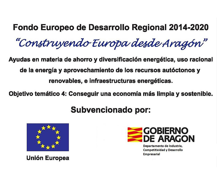 La instalación de las placas solares ha sido subvencionada por la Unión Europea y el Gobierno de Aragón a través de fondos FEDER, dentro del programa “Construyendo Europa desde Aragón”.