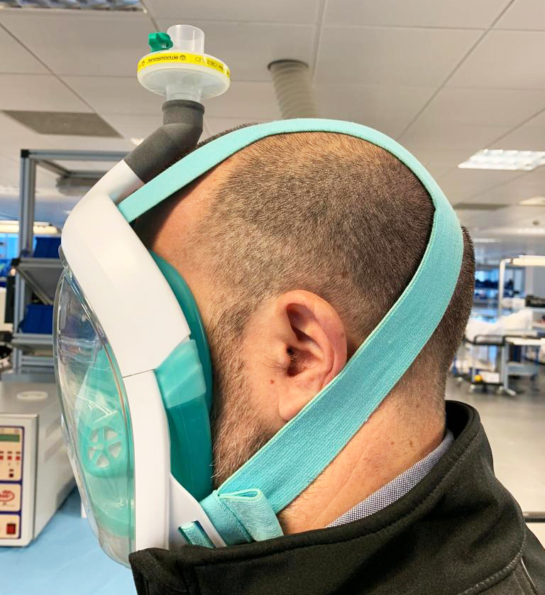 – Trabajando conjuntamente Decathlon, la ingeniería de Airbus, la ingeniería de Podoactiva y varios hospitales de Madrid se han diseñado y fabricado PROTOTIPOS que permiten adaptar las máscaras de buceo de Decathlon para dos finalidades: