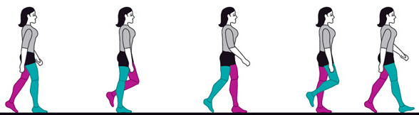 En términos generales podemos dividir un paso en fase de balanceo y fase de carga. Aproximadamente en un paso normal la fase de carga ocupará el 60% del total del paso, mientras que la fase de balanceo ocupará el 40% restante.