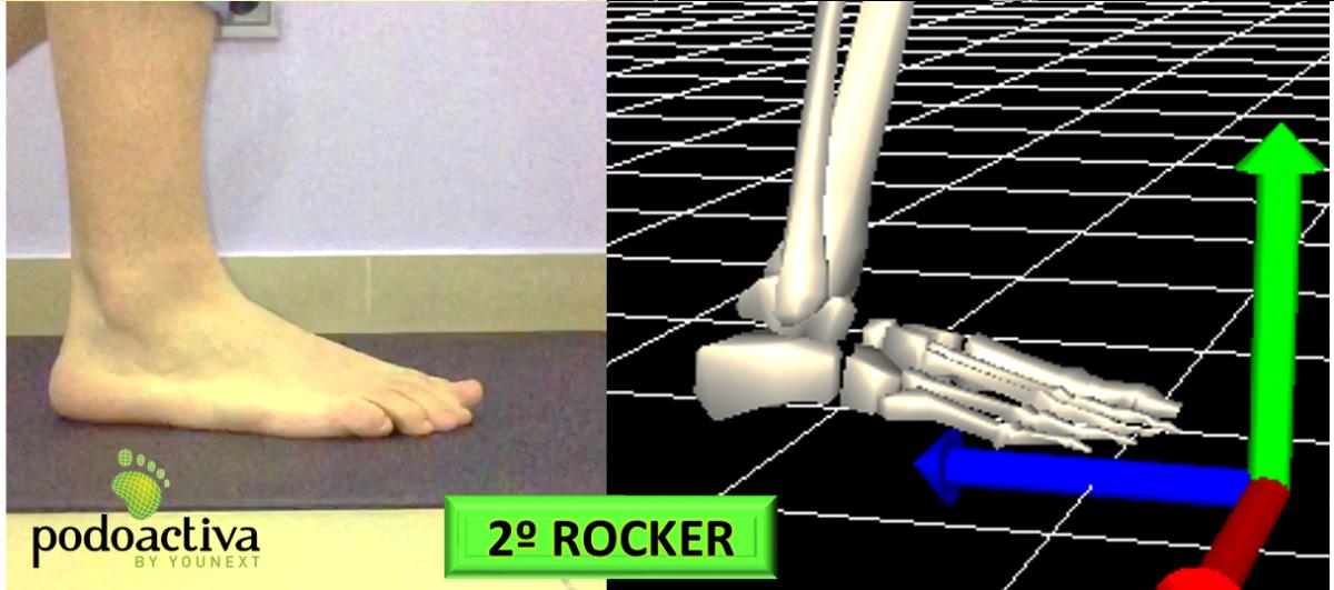 El 2º rocker del pie o balancín de tobillo, comienza cuando el pie está completamente apoyado sobre el suelo y se produce el avance de la pierna por encima del pie gracias a la articulación del tobillo. Problemas de congruencia articular y de estructura del pie pueden acortar o alargar la duración de este rocker, produciendo alteraciones biomecánicas. Aunque el mecanismo de producción de las lesiones musculares es muy variado, es en este rocker es donde más habitualmente se produce el famoso exceso de pronación y generamos problemas musculares tipo fascitis plantar, periostitis, tendinitis de tibial posterior, etc (la pronación hasta cierto punto es fisiológica en este rocker).