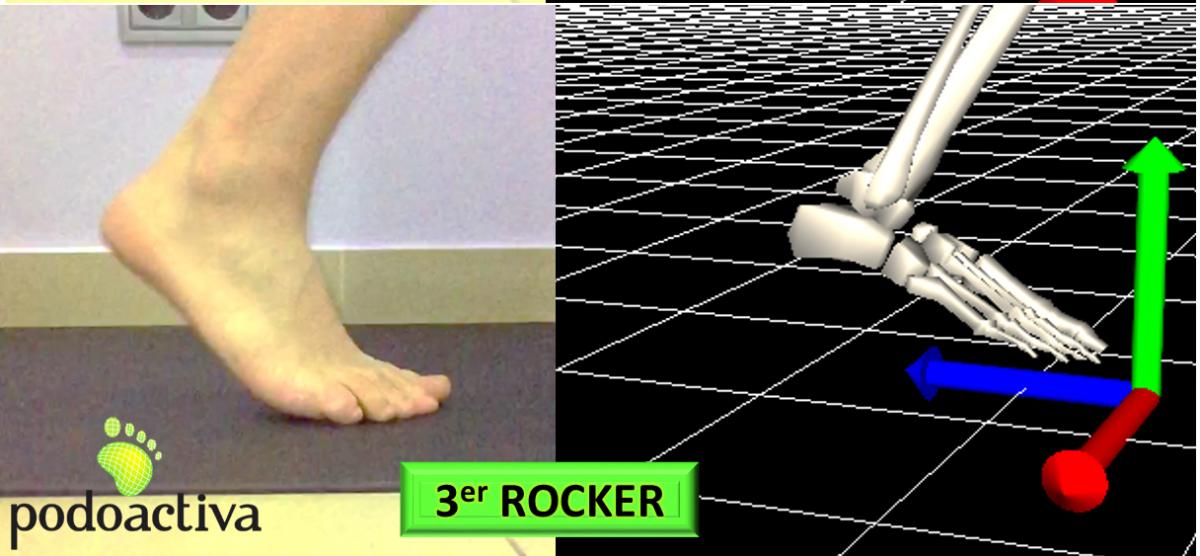 Por último, el 3º rocker o balancín de antepié se inicia cuando se empieza a levantar el talón del suelo y finaliza cuando despegamos todo el pie por la zona de los dedos para iniciar la fase de balanceo del pie. En este momento es importante que exista un buen movimiento en las articulaciones metatarsofalángicas (articulaciones que unen los metatarsianos con las falanges) para que no se produzca ningún tipo de sobrecarga de apoyo en esta zona. La articulación metatarsofalángica del primer dedo también tiene una función muy importante en este 3º rocker, la cual consiste en activar un mecanismo llamado WINDLASS.