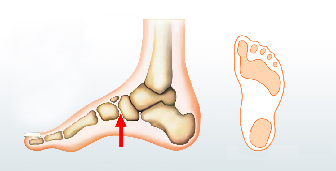 - Pie cavo anterior: Son pies en los que los metatarsianos presentan una inclinación muy marcada y generan un aumento del arco plantar con una excesiva carga en la zona plantar delantera del pie.
