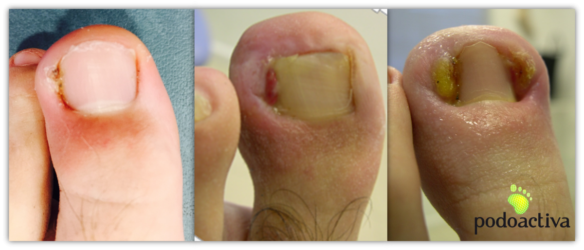 – ONICOCRIPTOSIS (uña incarnada). La uña incarnada (tambien llamada uña “encarnada”) es uno de los problemas de las uñas que más molestias y dolor puede provocar al paciente. Se realiza un tratamiento de extracción de espícula (fragmento de uña clavado), en el que se valoran otras soluciones para tratar de evitar la reincidencia del problema. Uno de ellos es la Ortonixia que desarrollamos en las clínicas Podoactiva, con el que se trata de reeducar el crecimiento de la uña recuperando la forma curva y la dirección natural de su desarrollo mediante la colocación de láminas de plástico, resinas o pequeños ‘brakets’ que generan tracción sobre la uña. Durante el periodo de colocación de estos minúsculos dispositivos pueden quedar disimulados ya que se cubren y se pintan con esmalte si se desea. En caso de continuas recidivas o casos más complejos se valora la posibilidad de cirugía.
