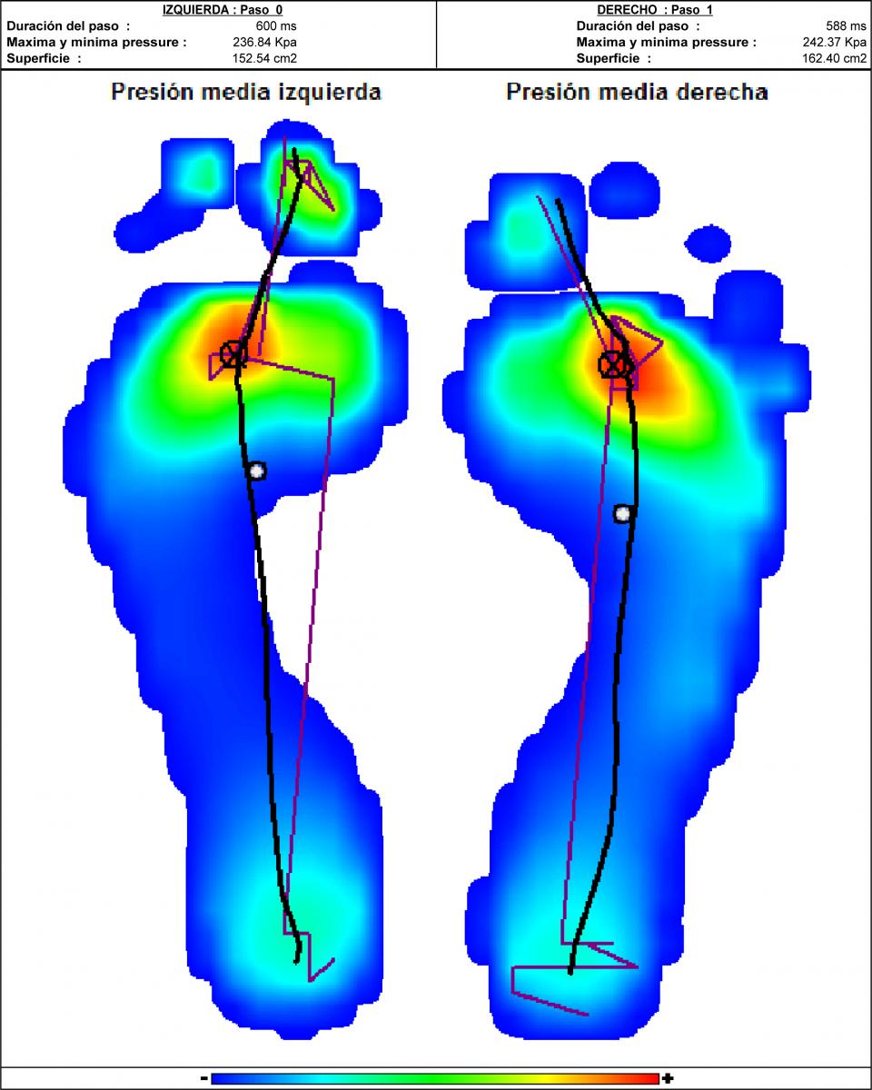 - Uso de plataforma de presiones, integradas dentro de los estudios biomecánicos. Estas tienen una gran precisión y nos aportan un amplio abanico de parámetros (como luego comprobaremos con el caso clínico).
