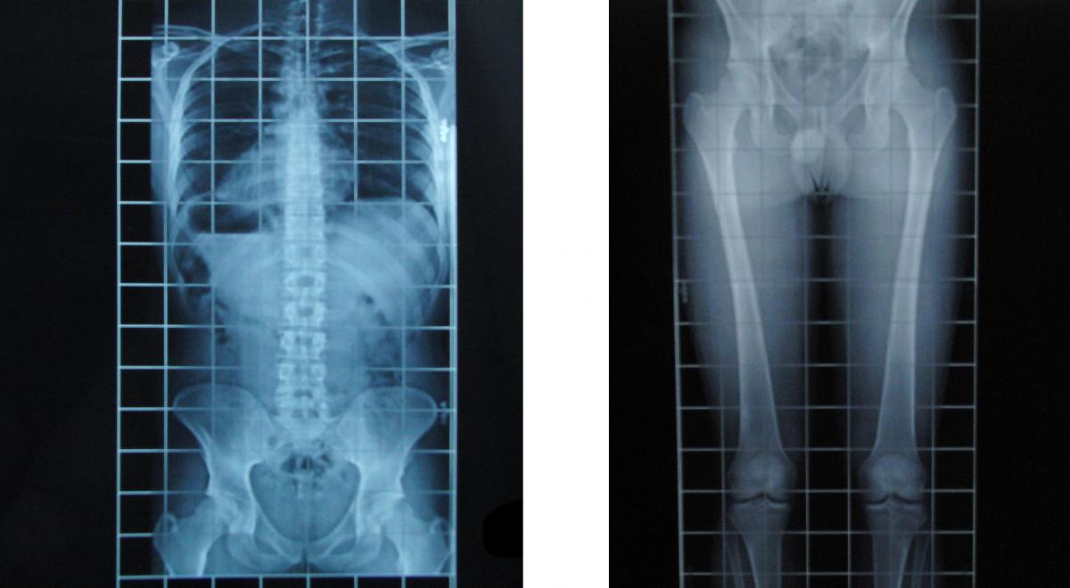 - Telemetría (radiografías), que muestra una disimetría de 1,3 cm más corto el miembro inferior derecho.