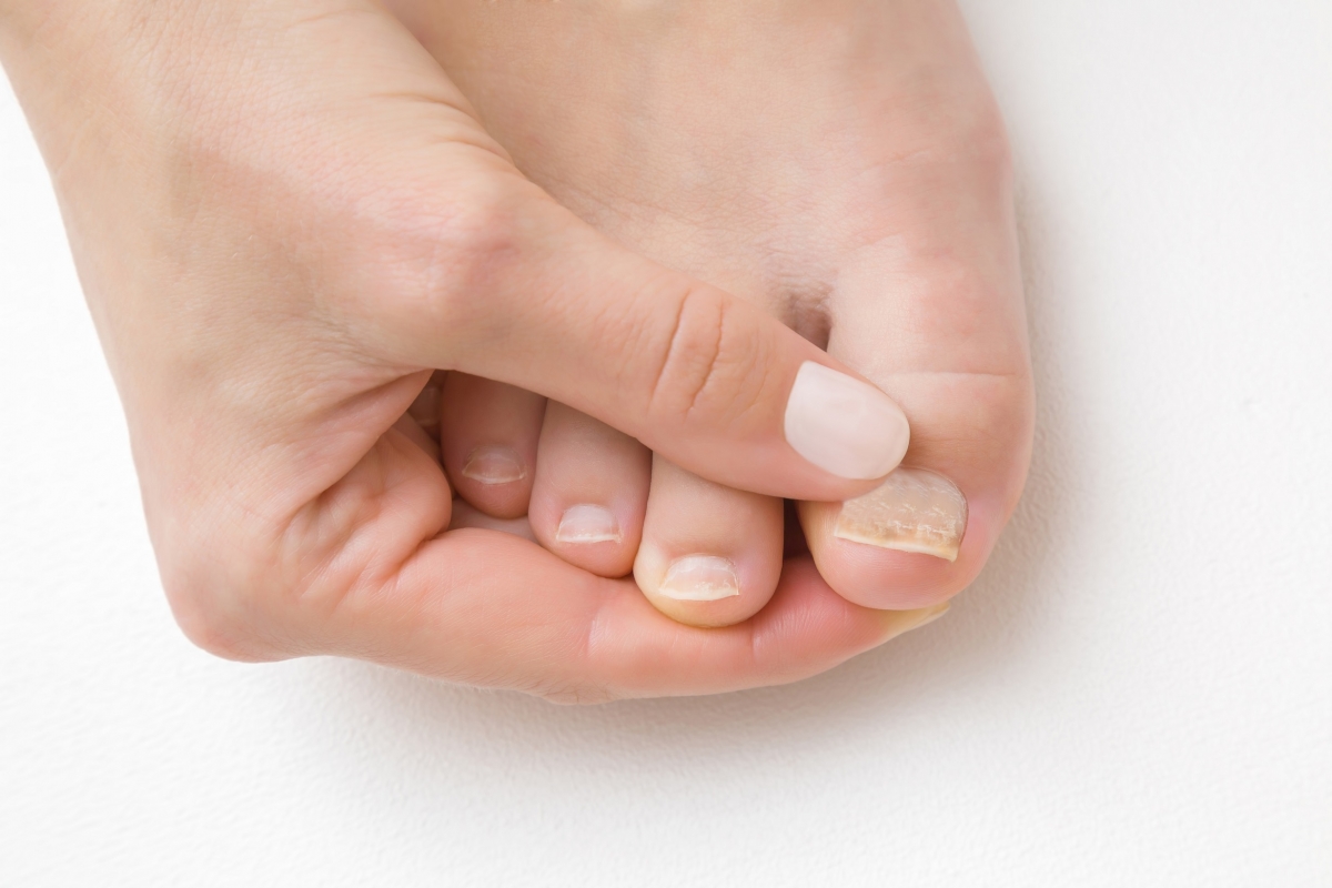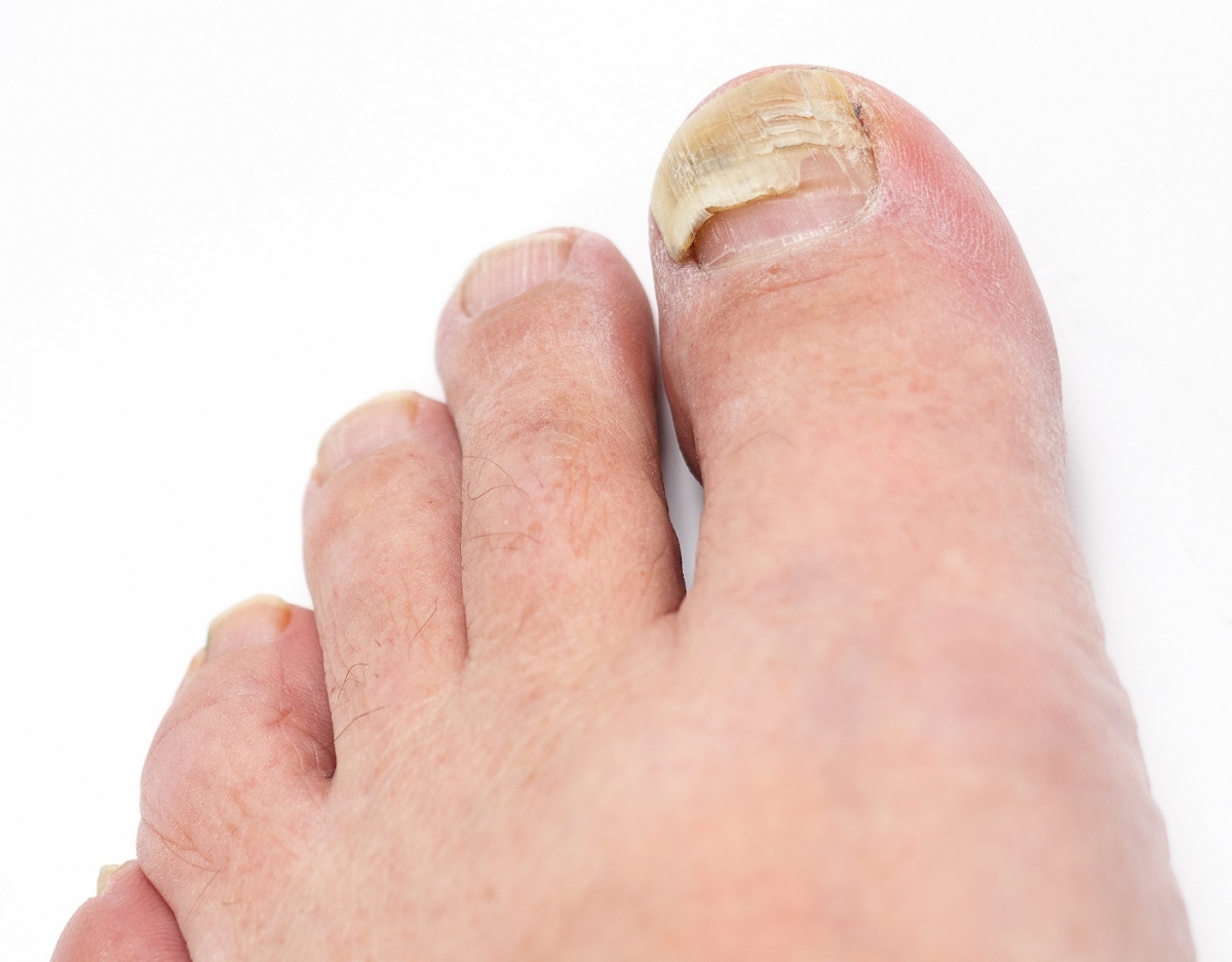 - Infección por hongos en las uñas, la cual ocurre cuando los hongos invaden una uña de un dedo de la mano o del pie y la piel debajo de la uña (lecho ungueal). Las uñas de los dedos de los pies se ven afectadas con más frecuencia que las uñas de los dedos de las manos, y los síntomas incluyen uñas rajadas, amarillas, con coloración, con vetas, engrosadas o manchadas.