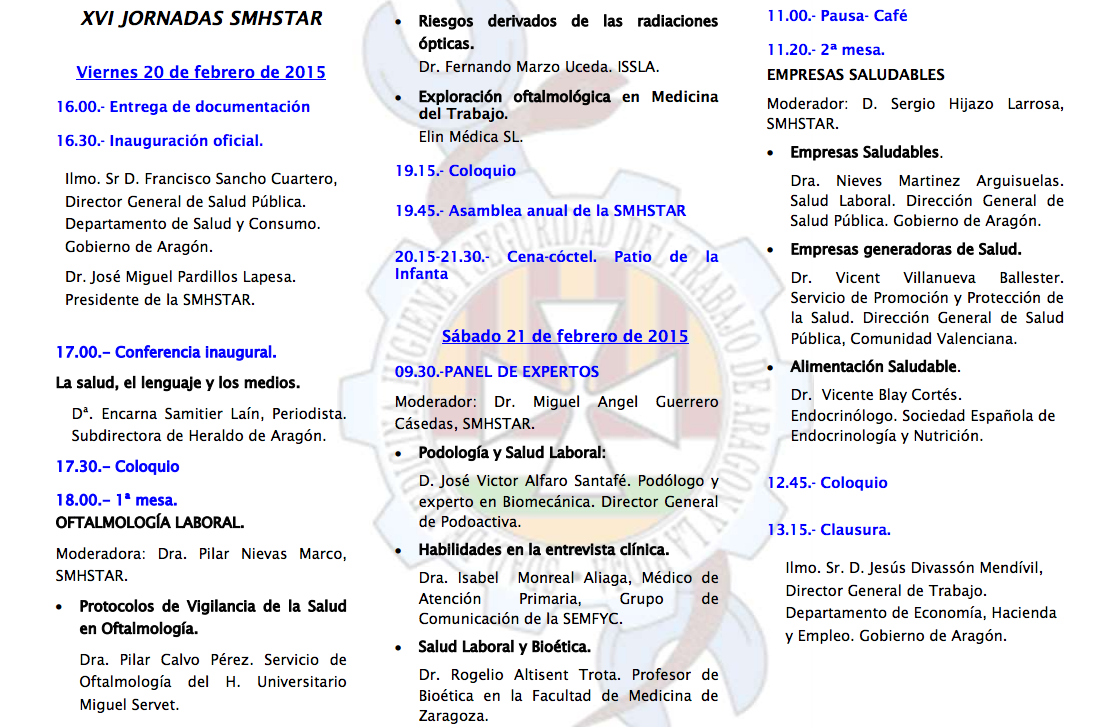 XVI Jornadas de la Sociedad de Medicina, Higiene y Seguridad del Trabajo de Aragón y La Rioja