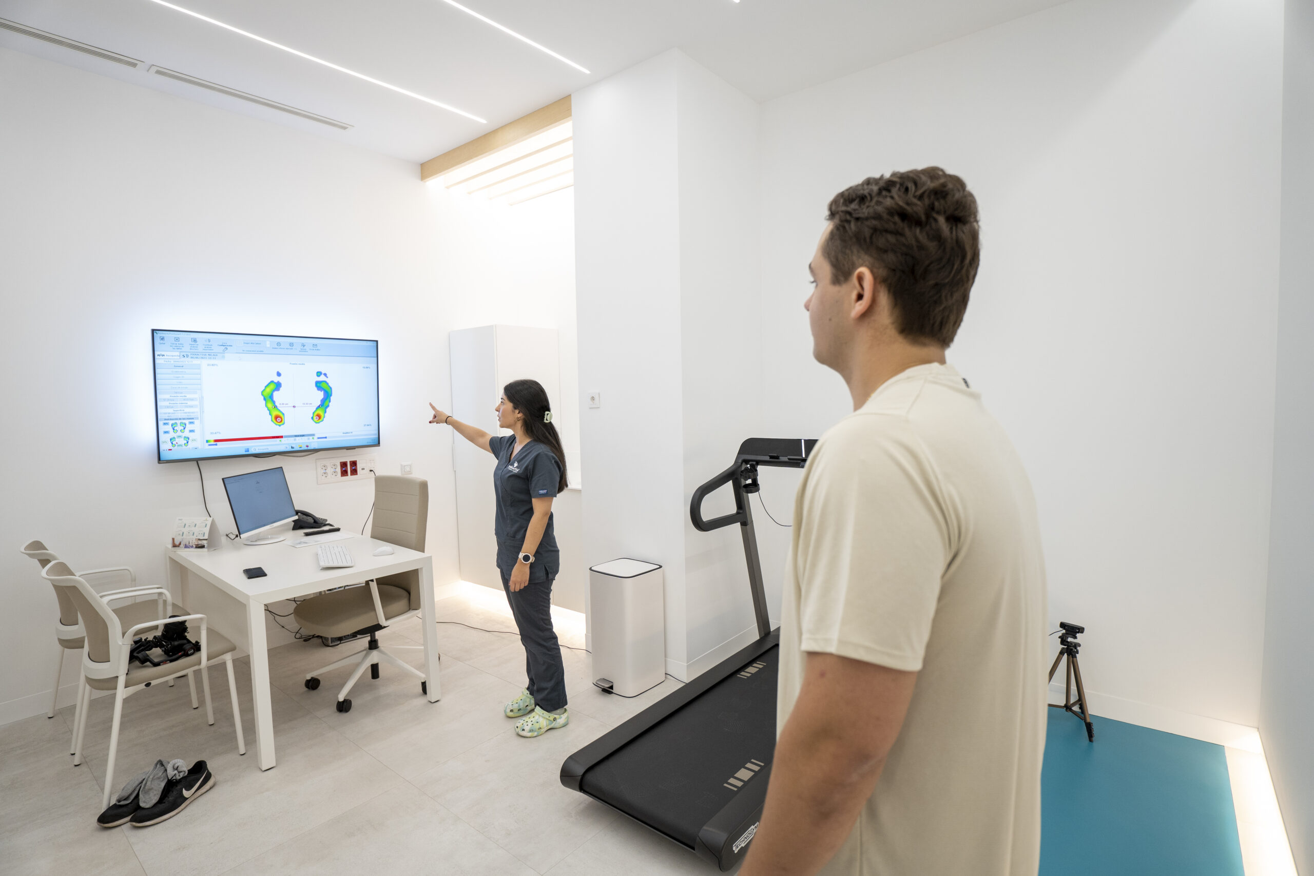 El centro está equipado con tecnología avanzada que permite a nuestros podólogos aplicar los protocolos exclusivos de Podoactiva para el estudio biomecánico de la marcha y la pisada. Además, la clínica cuenta con una cinta de correr instrumentada para que nuestros podólogos puedan realizar un análisis específico de running, lo que refuerza su especialización en podología deportiva.